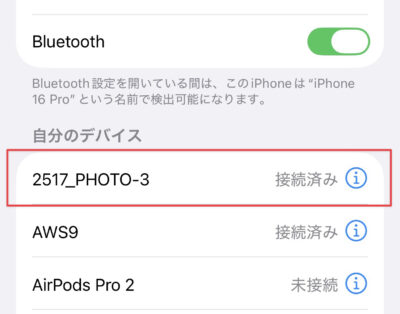 Bluetoothの設定から「2517_PHOTO-3」というデバイスを選んだら準備OK!