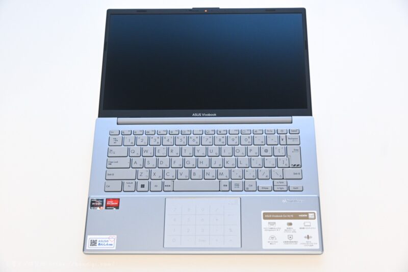 まずは、ASUS Vivobook Go 14 (E1404F)の外観やスペックを簡単に確認していきます。
