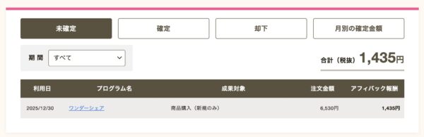 これだけでもお得でしたが、自分は「アクセストレード」というアフィリエイトプログラムに登録していて、その中にあるセルフアフィリエイトの「アフィバックモール」から登録することで1,435円の成果が発生しました。
