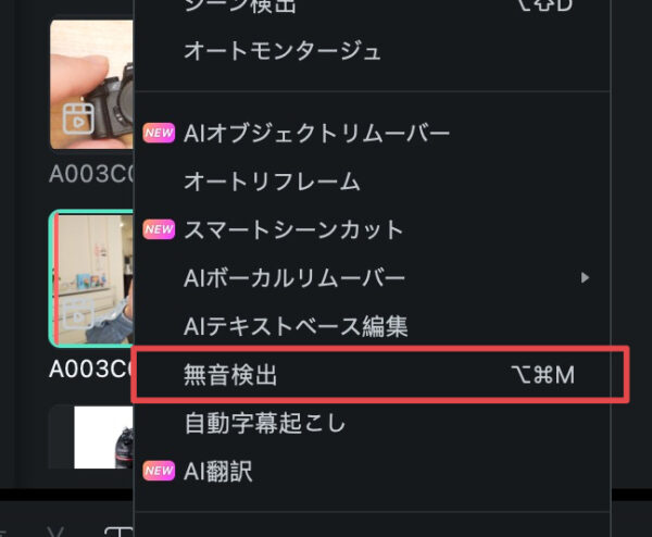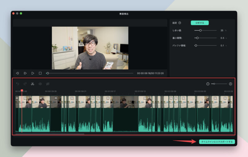 Filmoraの無音検出について